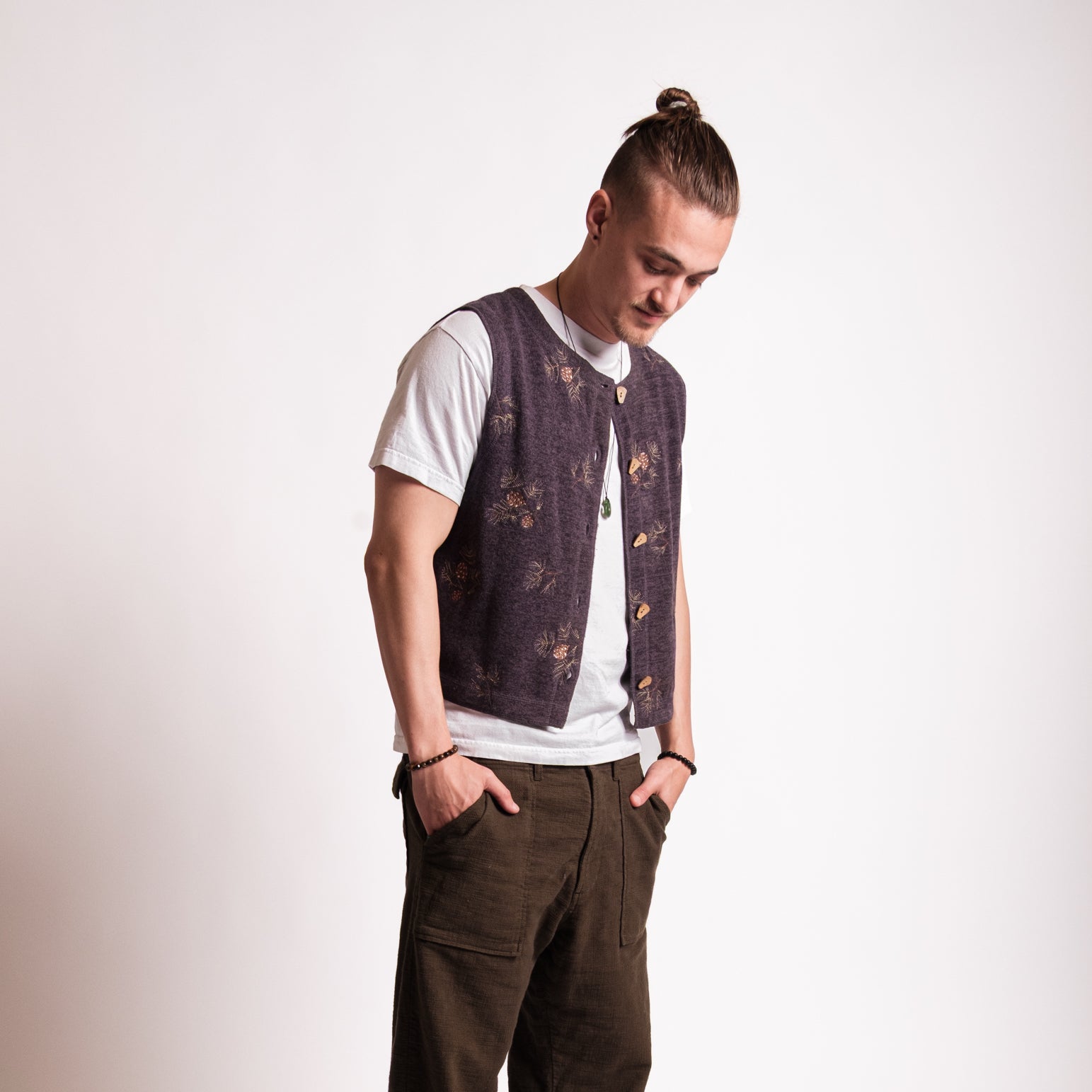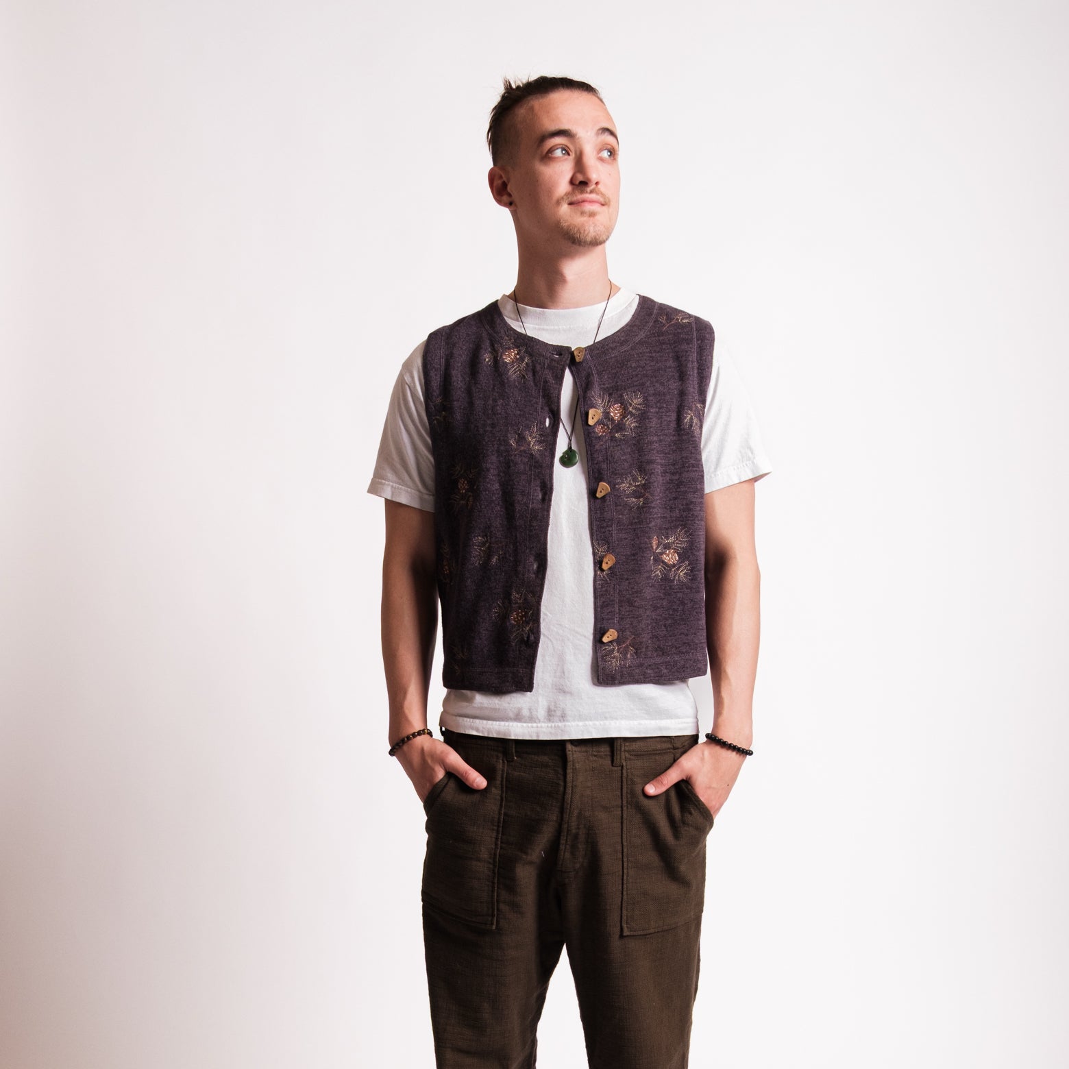 This cozy wool vest is giving cottagecore dreams with its acorn embroidery and rustic color palette. Fully lined and perfect for layering.